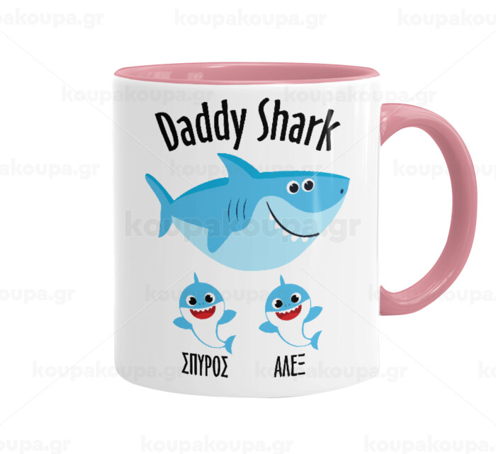 Daddy Shark (με ονόματα παιδικά), Mug colored pink, ceramic, 330ml