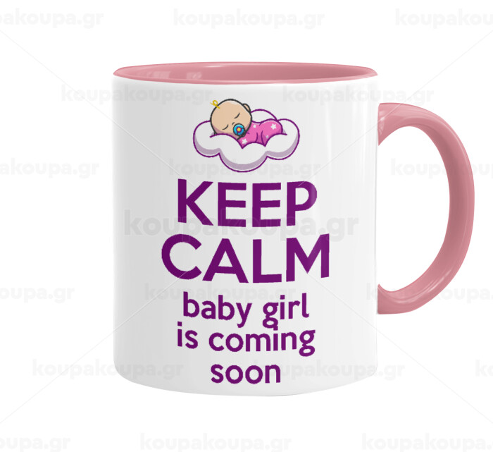 KEEP CALM baby girl is coming soon!!!, Mug colored pink, ceramic, 330ml