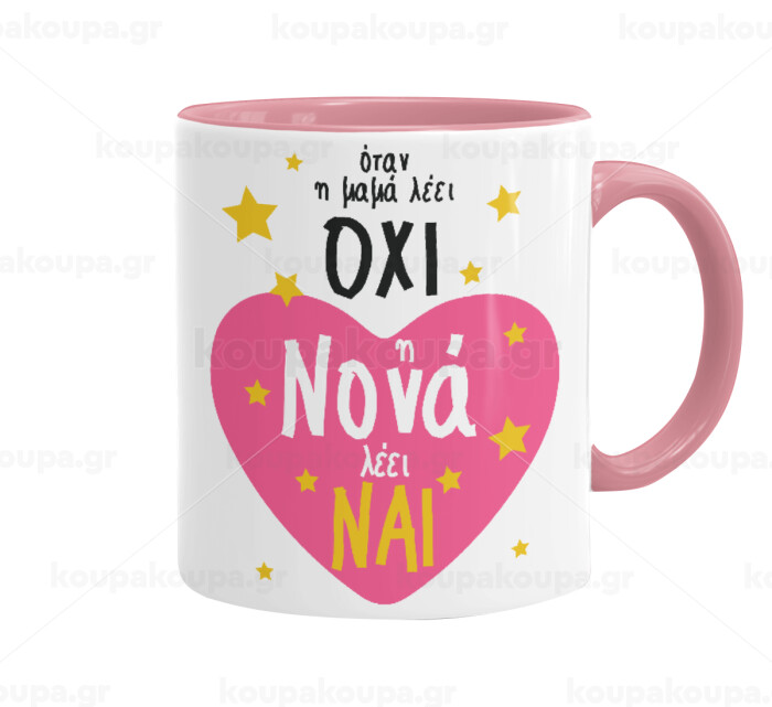 Η νονά λέει ναι!!!, Mug colored pink, ceramic, 330ml