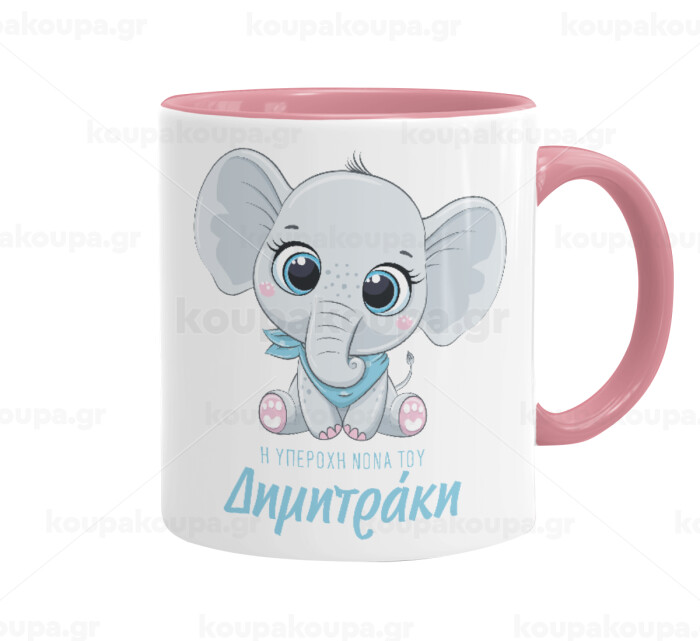 Η νονά μου, ελεφαντάκι γαλάζιο, Mug colored pink, ceramic, 330ml