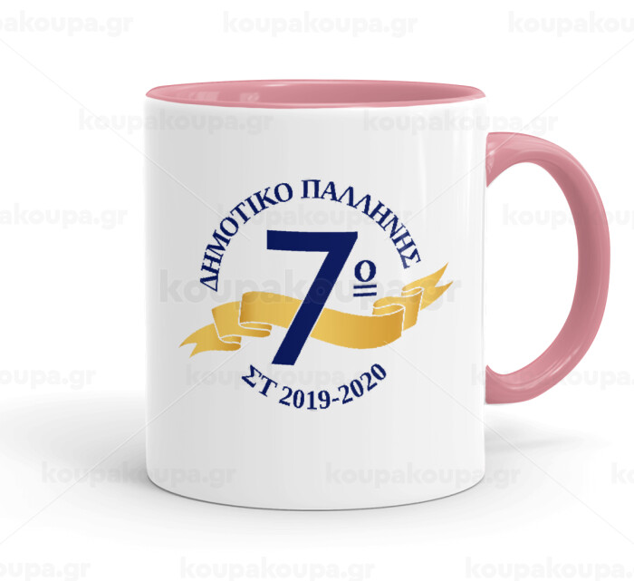 Σχολική μπλε με κορδέλα, Mug colored pink, ceramic, 330ml
