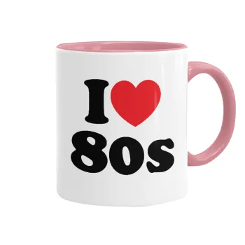 I Love 80s, Mug colored pink, ceramic, 330ml