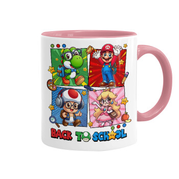 Back to the School Mario & Friends, Mug colored pink, ceramic, 330ml