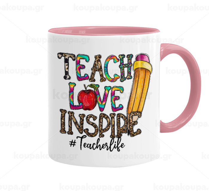 Teach, Love, Inspire, Mug colored pink, ceramic, 330ml