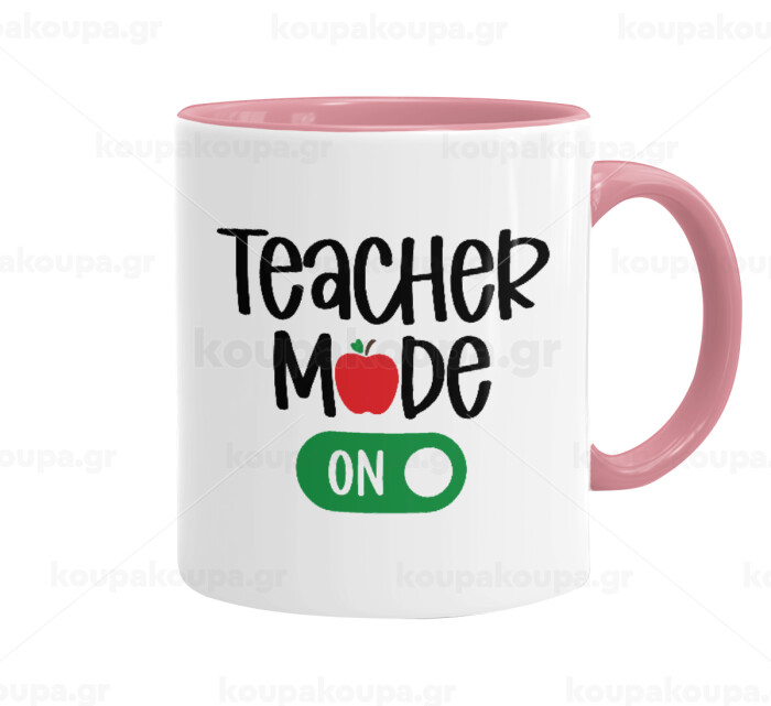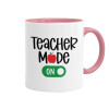 Teacher mode ON, Mug colored pink, ceramic, 330ml