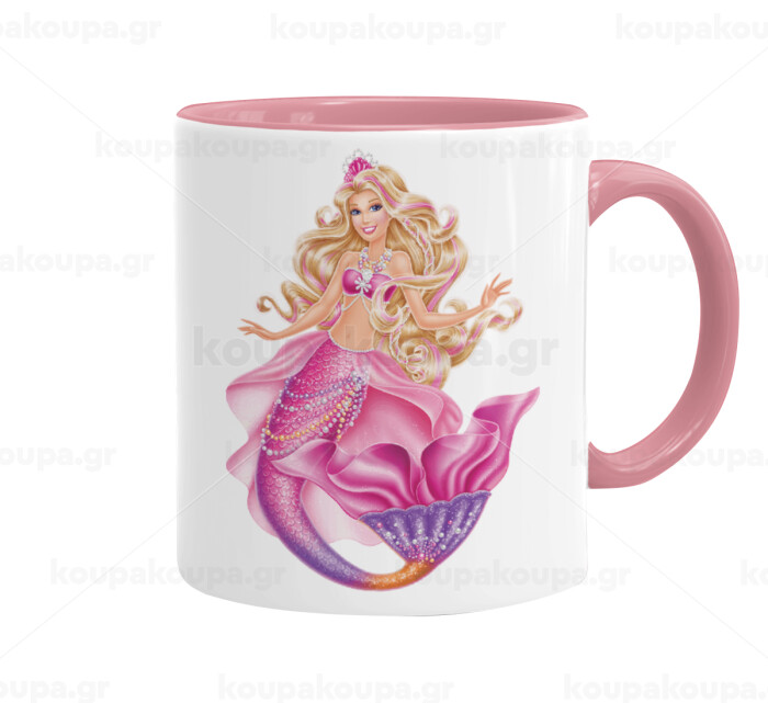 Barbie mermaid blue, Mug colored pink, ceramic, 330ml