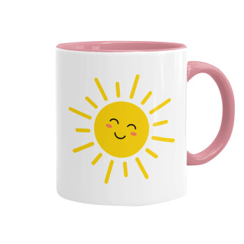 Happy sun, Mug colored pink, ceramic, 330ml