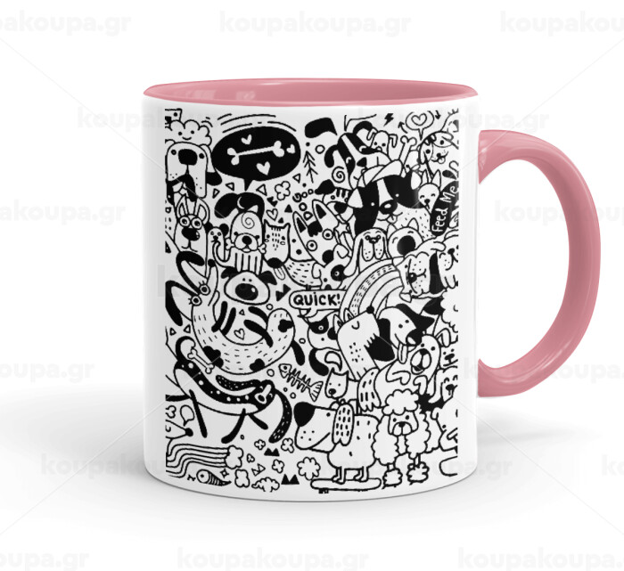 DOG pattern, Mug colored pink, ceramic, 330ml