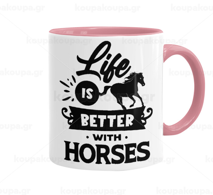 Life is Better with a Horses, Mug colored pink, ceramic, 330ml