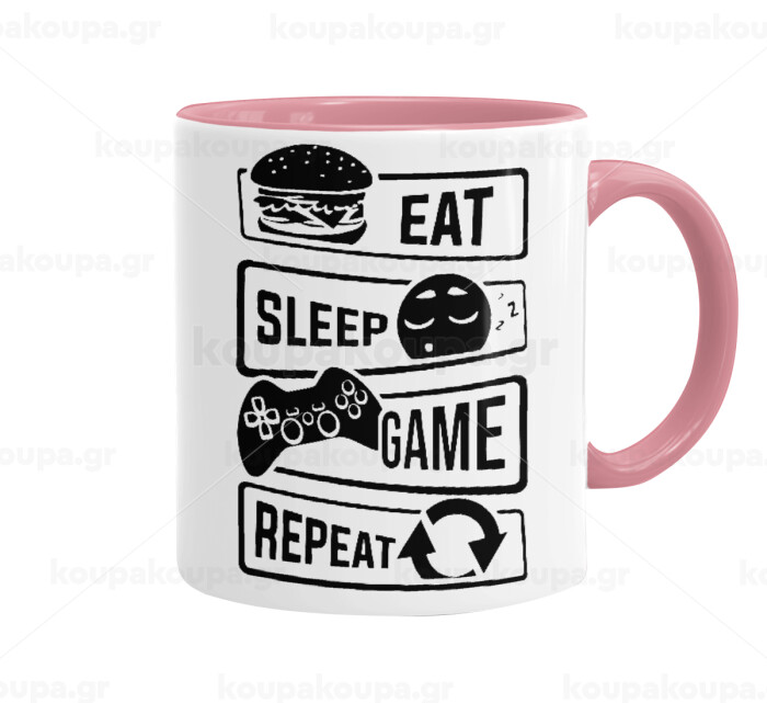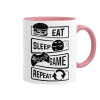 Eat Sleep Game Repeat, Mug colored pink, ceramic, 330ml