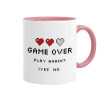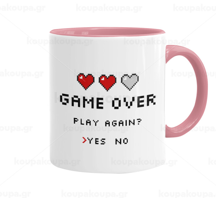 GAME OVER, Play again? YES - NO, Mug colored pink, ceramic, 330ml