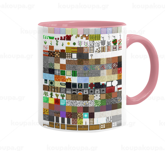 Minecraft blocks, Mug colored pink, ceramic, 330ml