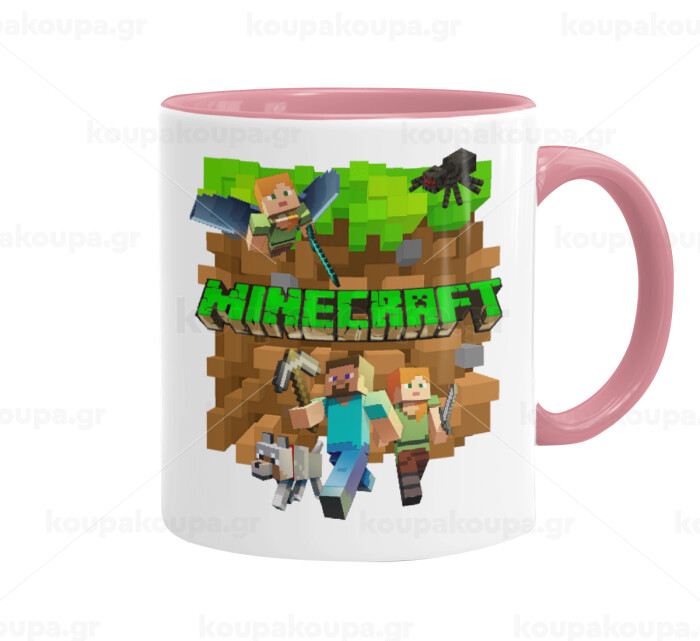Minecraft characters, Mug colored pink, ceramic, 330ml
