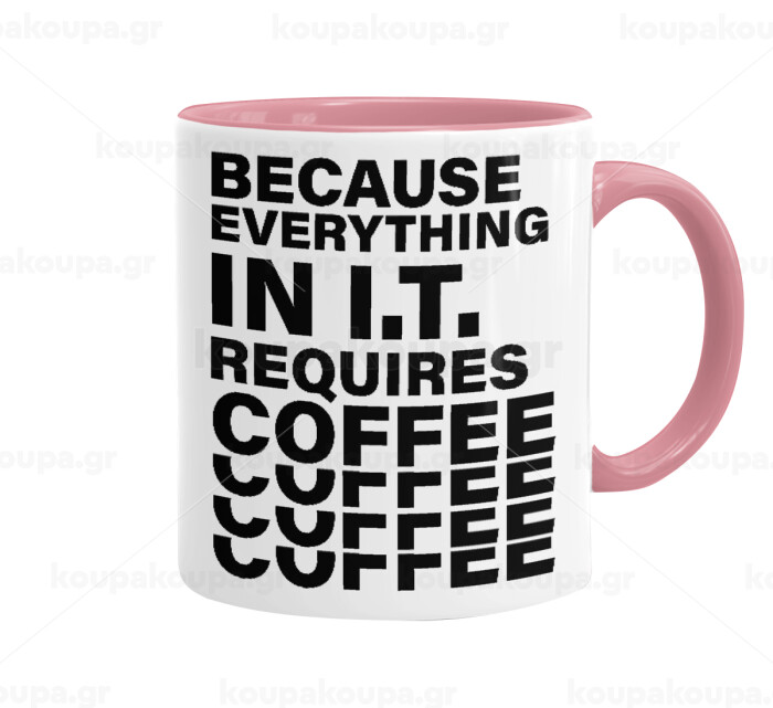 Because everything in I.T. requires coffee, Mug colored pink, ceramic, 330ml