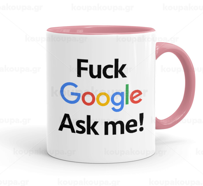 Fuck Google, Ask me!, Mug colored pink, ceramic, 330ml