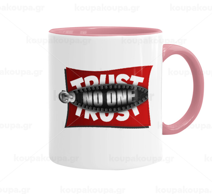 Trust no one... (zipper), Mug colored pink, ceramic, 330ml