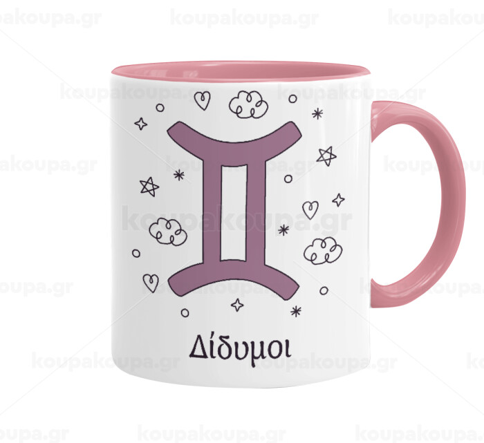 Ζώδια Δίδυμοι, Mug colored pink, ceramic, 330ml