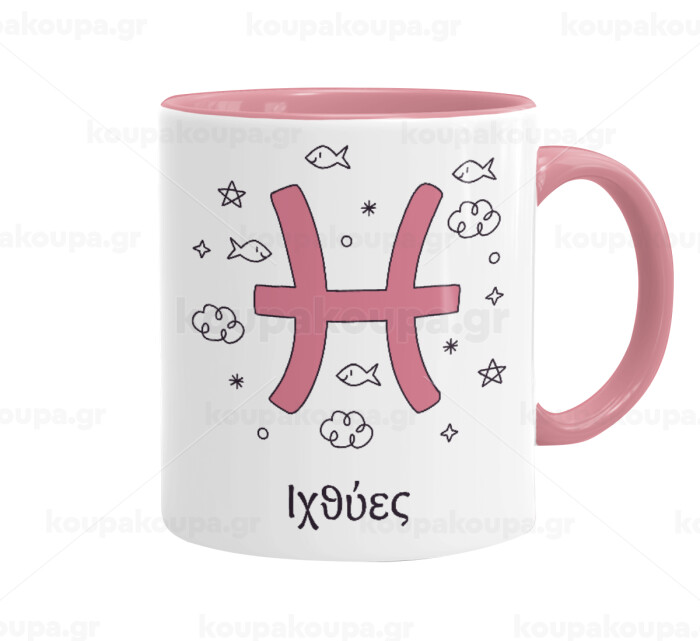 Ζώδια Ιχθύες, Mug colored pink, ceramic, 330ml
