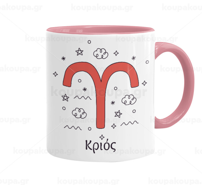 Ζώδια Κριός, Mug colored pink, ceramic, 330ml