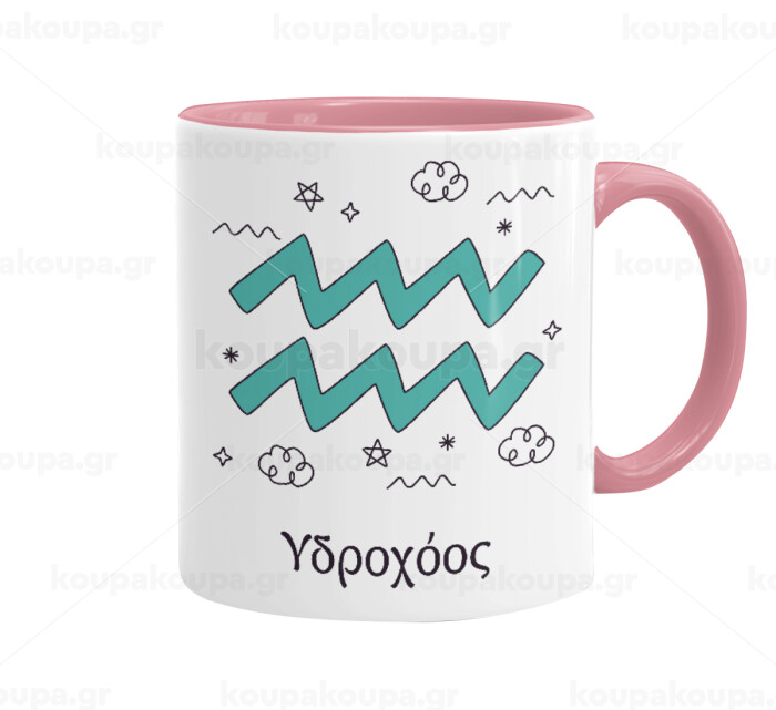 Ζώδια Υδροχόος, Mug colored pink, ceramic, 330ml