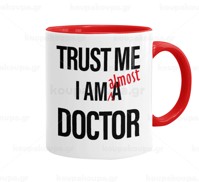 Trust me, i am (almost) Doctor, Mug colored red, ceramic, 330ml
