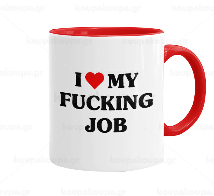 I love my fucking job, Mug colored red, ceramic, 330ml