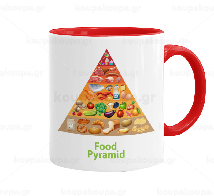 Food pyramid chart, Mug colored red, ceramic, 330ml