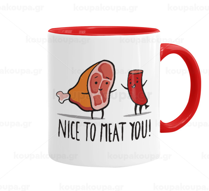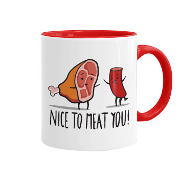 Nice to MEAT you, Mug colored red, ceramic, 330ml