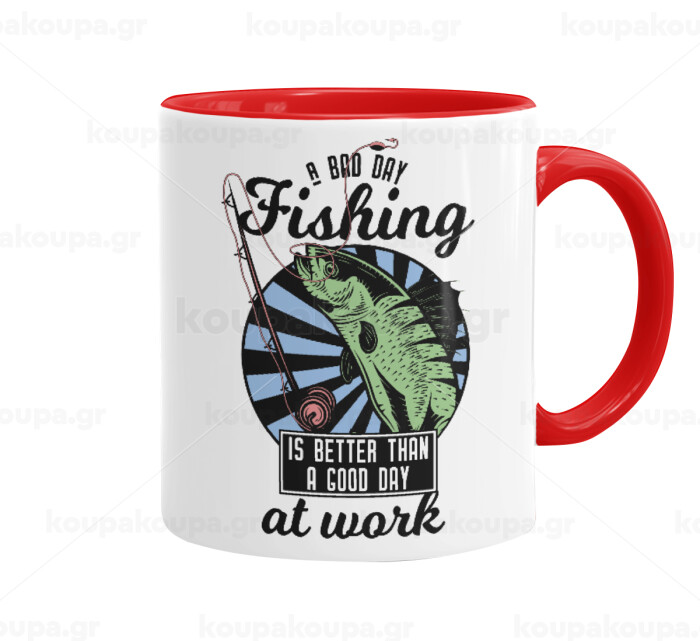 A bad day FISHING is better than a good day at work, Mug colored red, ceramic, 330ml