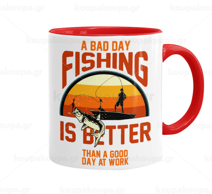 A bad day FISHING is better than a good day at work, Mug colored red, ceramic, 330ml
