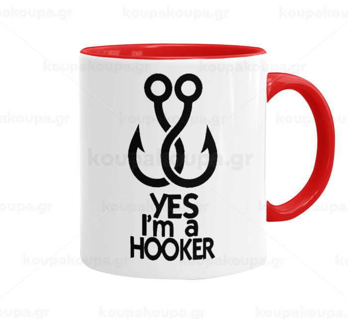 Yes i am Hooker, Mug colored red, ceramic, 330ml