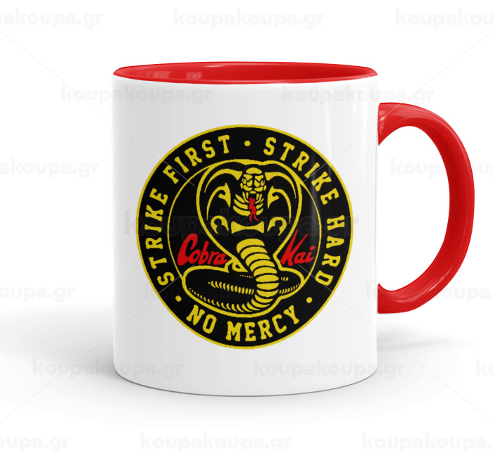 cobra kai strike first dojo, Mug colored red, ceramic, 330ml