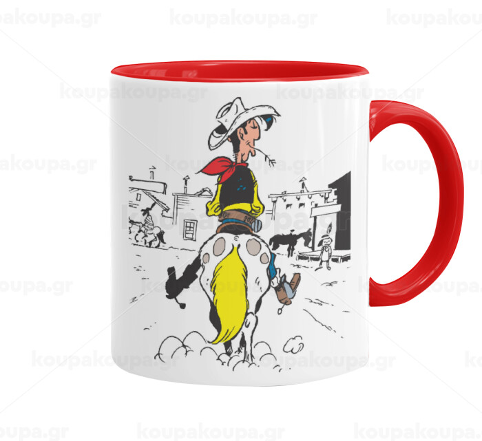 Lucky Luke comic, Mug colored red, ceramic, 330ml