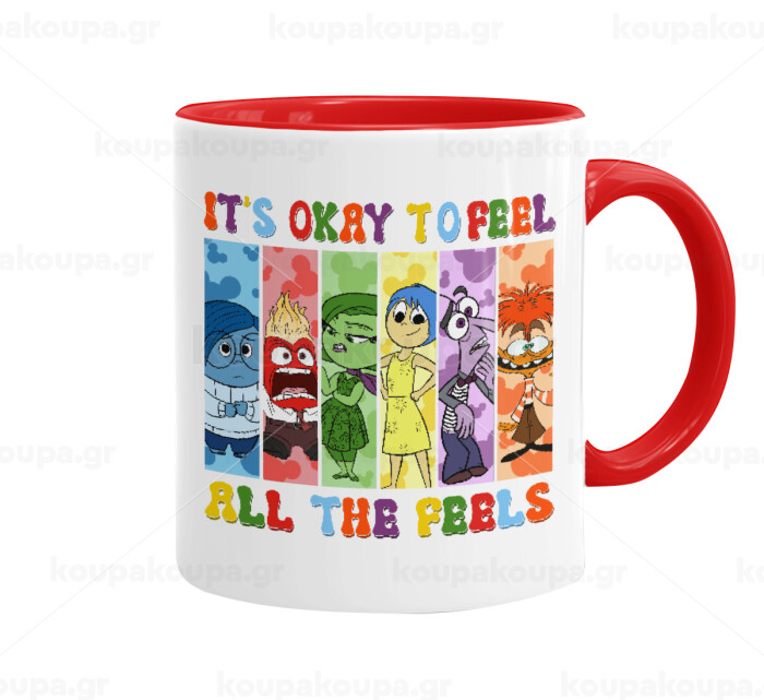 Inside Out It's Okay To Feel All The Feels , Mug colored red, ceramic, 330ml