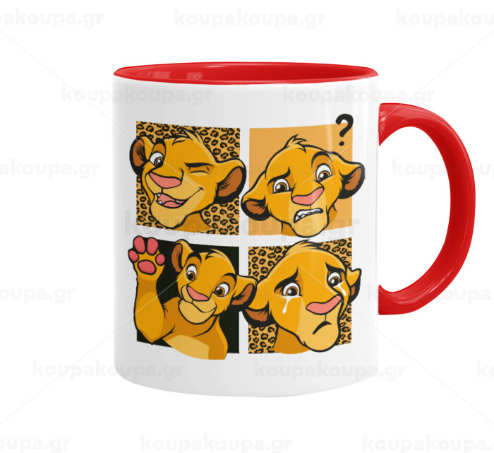 Simba, lion king, Mug colored red, ceramic, 330ml