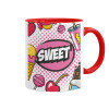 Classic glossy cups with colored handle and interior, of excellent quality with vibrant colors. Dishwasher safe, suitable for microwave oven. Use it for hot and cold drinks.