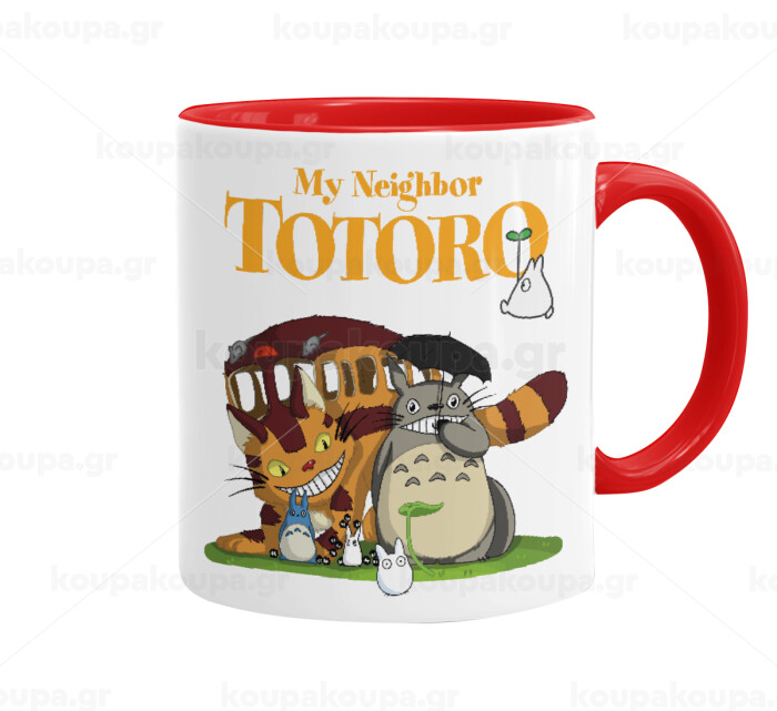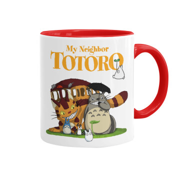 Totoro and Cat, Mug colored red, ceramic, 330ml