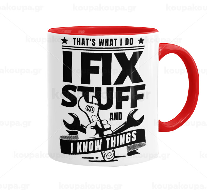 I fix stuff, Mug colored red, ceramic, 330ml