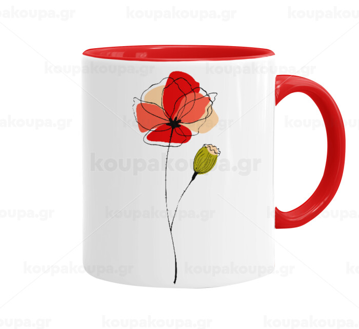 Red poppy flowers papaver, Mug colored red, ceramic, 330ml