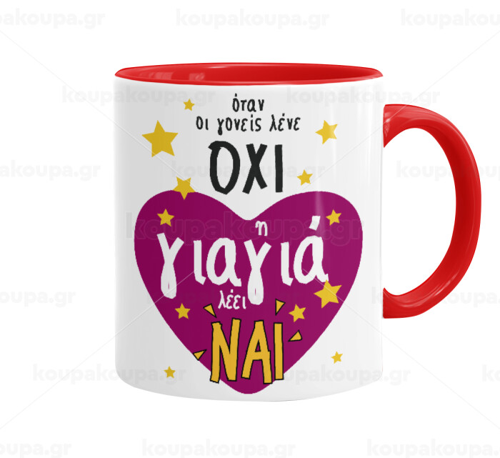 Όταν οι γονείς λένε ΟΧΙ, η γιαγιά λέει ΝΑΙ, Mug colored red, ceramic, 330ml