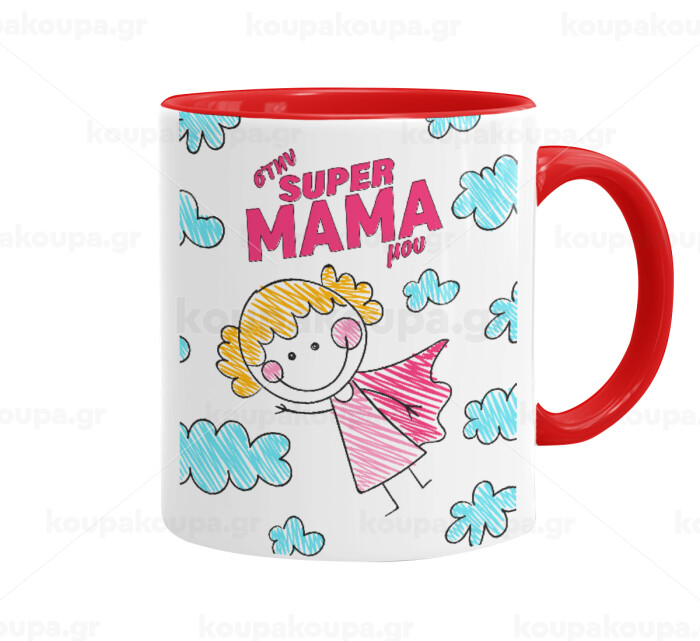 Στην SUPER μαμά μου, comic, Mug colored red, ceramic, 330ml