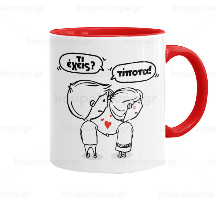Τι έχεις? Τίποτα!, Mug colored red, ceramic, 330ml