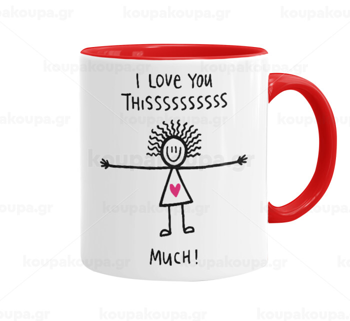I Love you thissss much..., Mug colored red, ceramic, 330ml