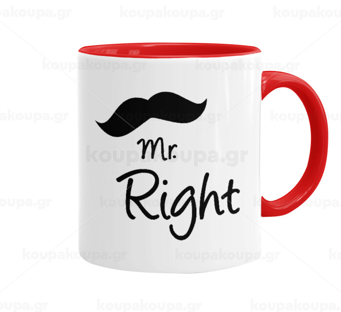 Mr right Mustache, Mug colored red, ceramic, 330ml