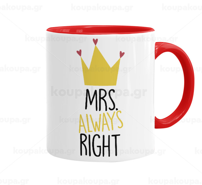 Mrs "Always" right, Mug colored red, ceramic, 330ml