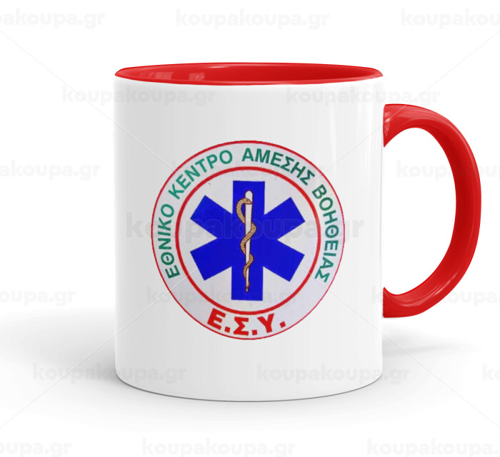 ΕΚΑΒ, Mug colored red, ceramic, 330ml