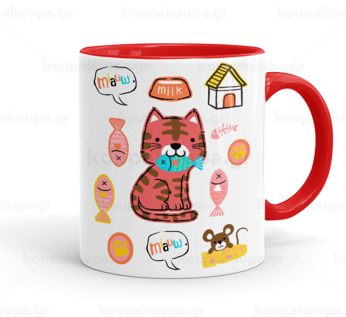 Cats and Fishes, Mug colored red, ceramic, 330ml