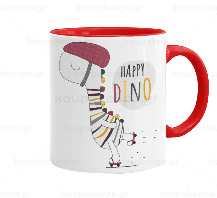 Happy Dino, Mug colored red, ceramic, 330ml