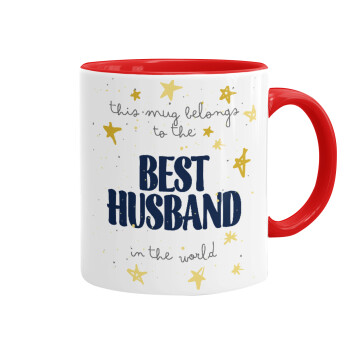 This mug belongs to the BEST HUSBAND in the world!, Mug colored red, ceramic, 330ml