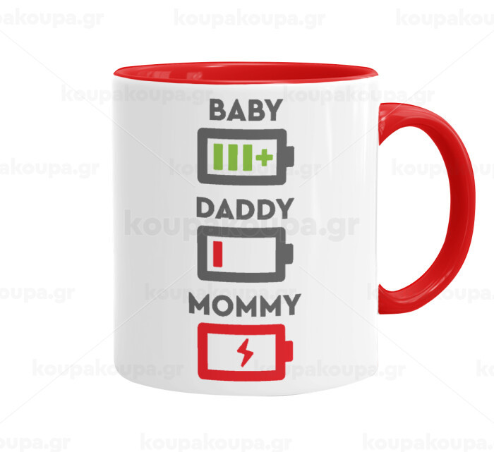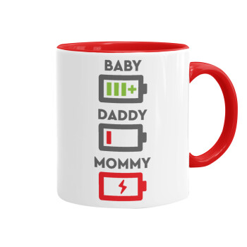 BABY, MOMMY, DADDY Low battery, Mug colored red, ceramic, 330ml